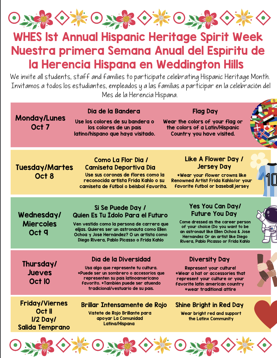 October 7-11: Hispanic Heritage Spirit Week (see details below)