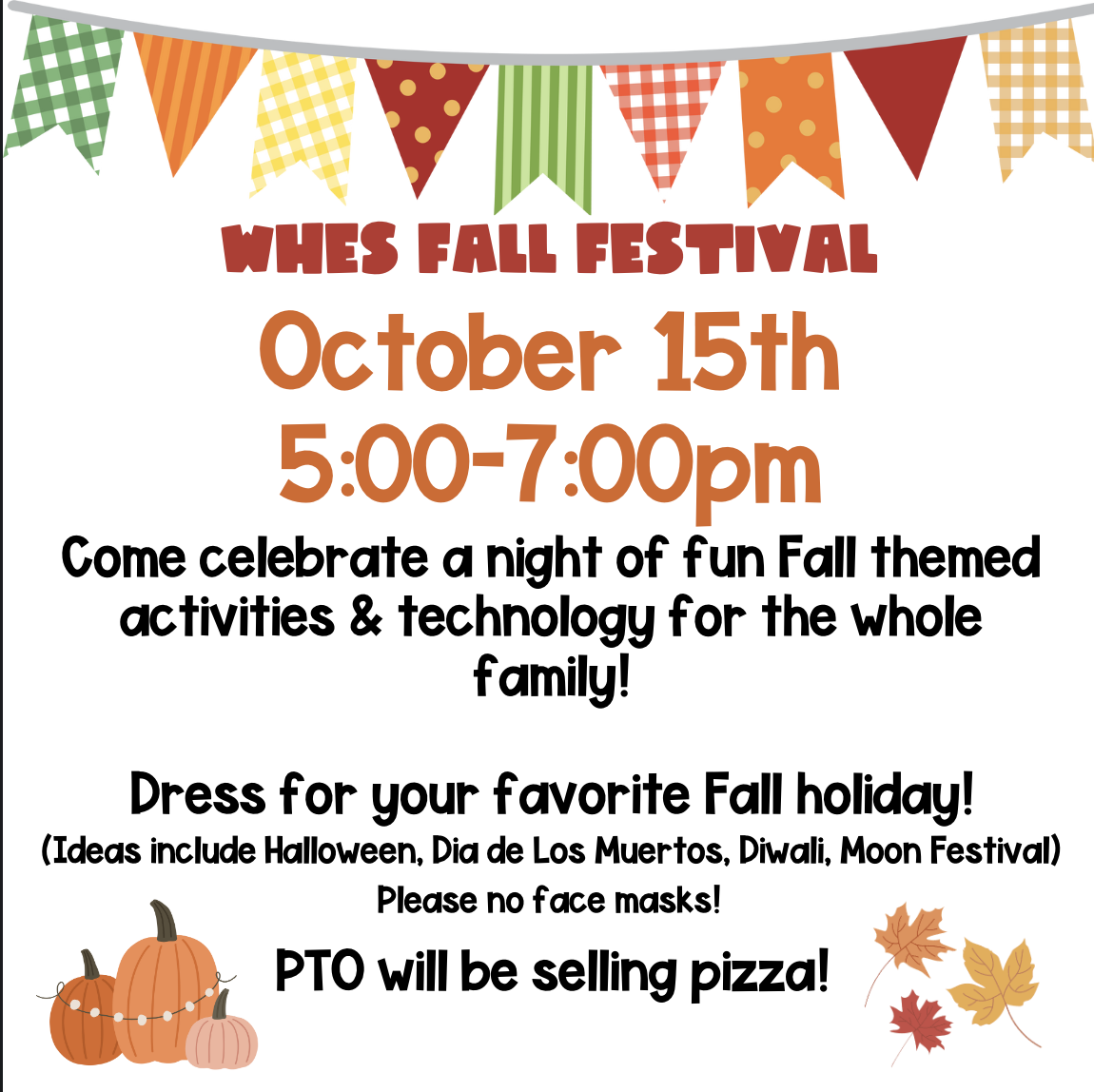 October 15: PTO Fall Festival/Tech Night - 5:00-7:00pm