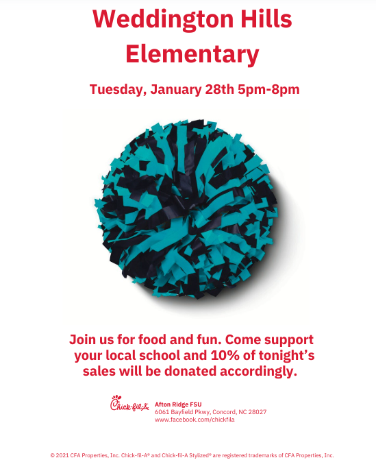 Mark your calendars for TOMORROW Tuesday, January 28th 5 - 8 pm, a Spirit Night at Afton Chick-fil-a! ![]()